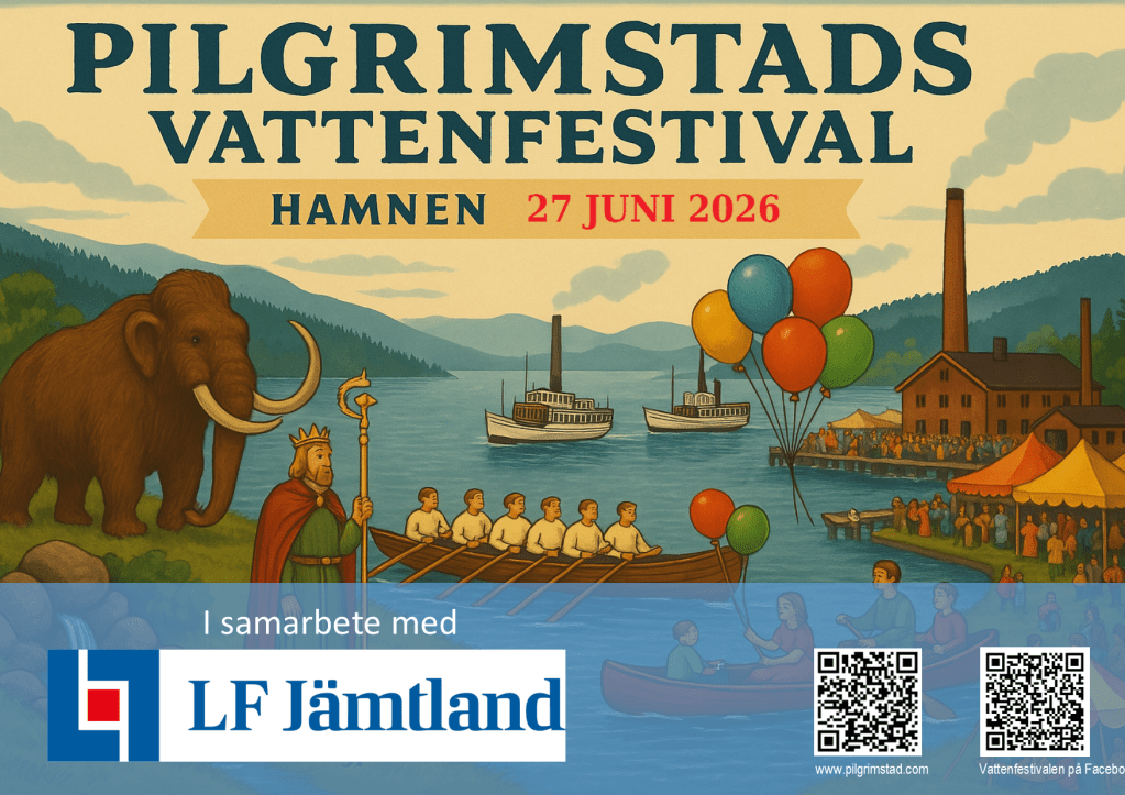 I Pilgrimstad är vattnet ständigt närvarande. Redan de gamla pilgrimerna stannade här för att dricka källvatten, samma källvatten som vi används av Jämtlands bryggeri för ölbryggning. Revsundssjöns öppna vatten och skridande isar är en naturlig del av livet här. Sjön ger både stillhet och aktivitet. Vattnet är vår historia och vårt DNA detta firar vi med folkfesten Vattenfestivalen i hamnen den 27 juni 2026.